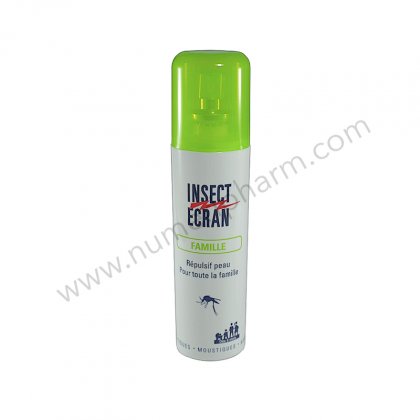 Insect Ecran Famille est formulé à base de DEET (concentré à 25%), actif répulsif contre toutes les espèces de moustiques (anophèle, aedes, culex), qui peuvent être vecteurs de maladies graves. Insect Ecran Famille assure une protection de 5h.